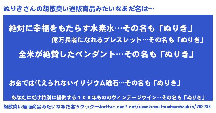 | 意味不明あだ名 | 『とにかく怪しいぬりき』 |