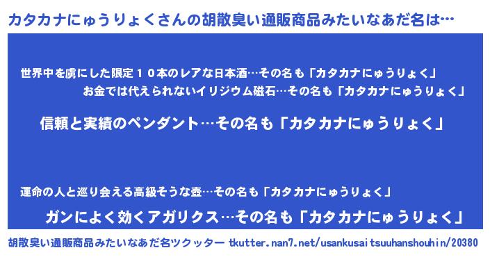 | 欧米人風あだ名 | 『ウサインカタカナにゅうりょく』 |