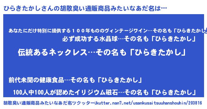 | 意味不明あだ名 | 『とにかく怪しいひらきたかし』 |