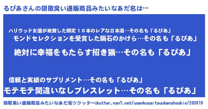 | ヘコむあだ名 | 『るぴあ(笑)』『るぴにゅー』 |