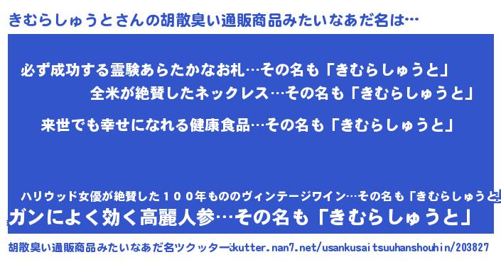 | ヘコむあだ名 | 『きむらしゅうと(笑)』『きむっふぃ~』 |