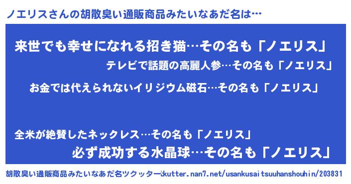 | ヘコむあだ名 | 『ノエリス(爆)』『ノエにゅー』 |