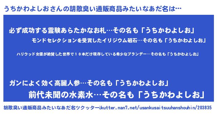 | ヘコむあだ名 | 『うちもー』『うちかわよしお(震え声)』 |