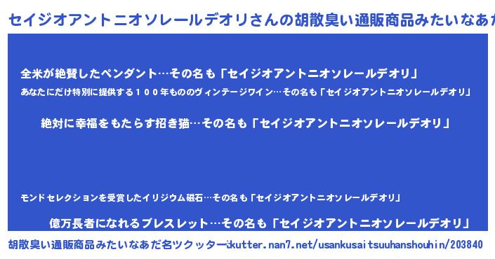 | ヘコむあだ名 | 『セイジオアントニオソレールデオリ(笑)』 |