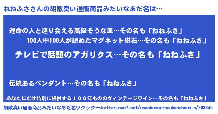 | 意味不明あだ名 | 『自称ねねふさ』『ねねふさフォーエバー』 |