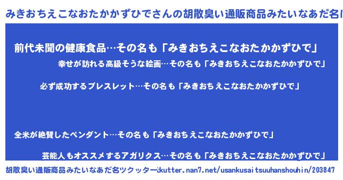 | 意味不明あだ名 | 『ペロリンみきおちえこなおたかかずひで』 |