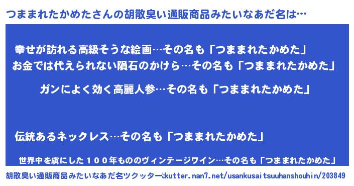 | 意味不明あだ名 | 『自称つままれたかめた』 |