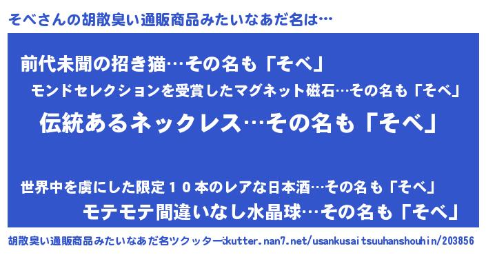 | 欧米人風あだ名 | 『ウサインそべ』『ダルビッシュそべ』 |