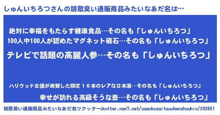 | 意味不明あだ名 | 『自称しゅんいちろつ』 |