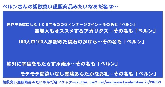 | ヘコむあだ名 | 『ベルっふぃ~』『ベルン(笑)』 |