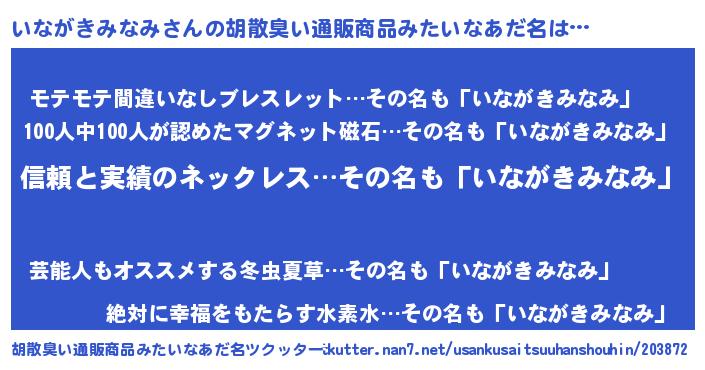 | ヘコむあだ名 | 『いなっ子』『いなふぇ~』『牛乳』 |
