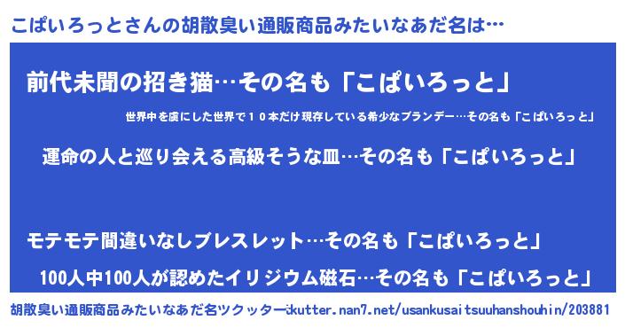 | 意味不明あだ名 | 『ニラ科こぱいろっと属』 |