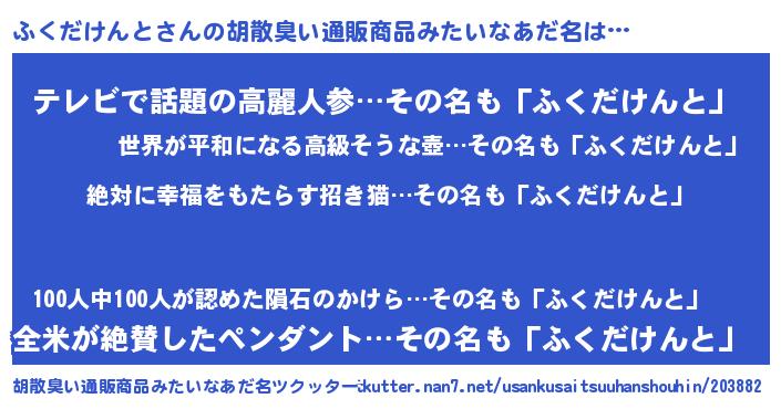 | ヘコむあだ名 | 『ふくだけんと(笑)』『ふくお』 |