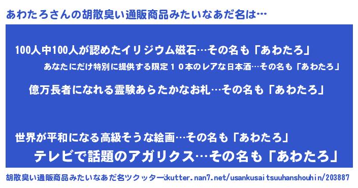 | 恥ずかしいあだ名 | 『プリティーあわたろ』『あわっちょ』 |
