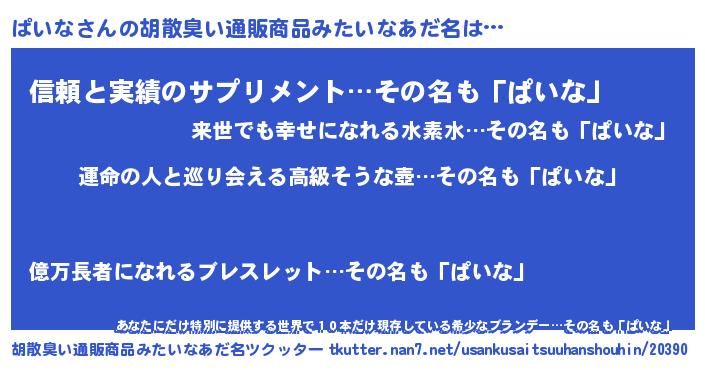 | 女子向けラノベタイトル風あだ名 | 『ぱいなの婚約者』『ぱいなは平凡を望む』 |