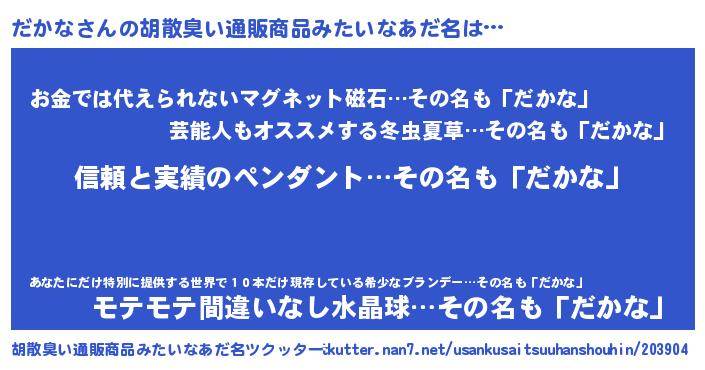 | 男性向けラノベタイトル風あだ名 | 『ダカナスレイヤー』 |