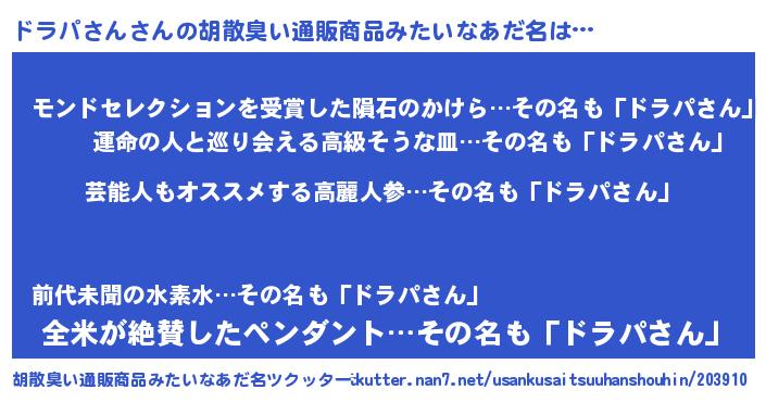 | 意味不明あだ名 | 『自称ドラパさん』 |