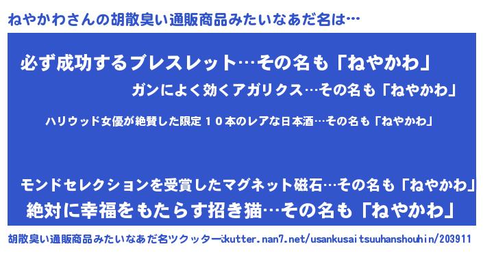 | ヘコむあだ名 | 『ねやもー』『ねやかわ(小並感)』 |