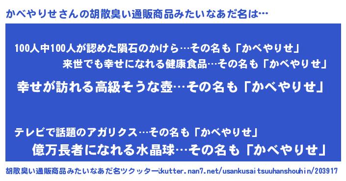 かべやりせさんの胡散臭い通販商品みたいなあだ名をツクッター!