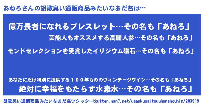 | ヘコむあだ名 | 『あねにゅー』『あねろ(笑)』 |