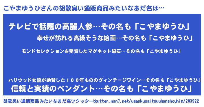| 肩書あだ名 | 『こやまゆうひ助教授』 |
