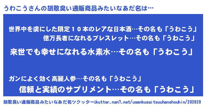 | ピコ太郎風あだ名 | 『ピコウ郎』『ウワ四郎』『ウコ次郎』 |