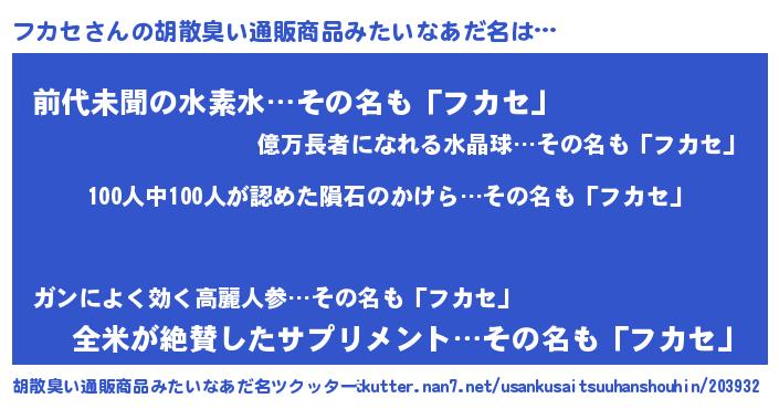 | 可愛いあだ名 | 『フカちゅっちゅ』『フカセママ』 |