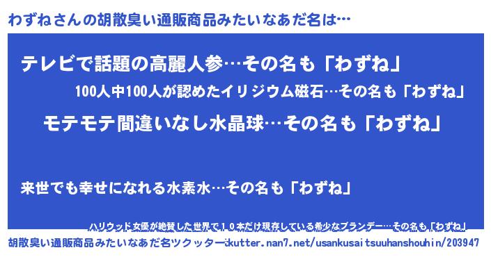 | 意味不明あだ名 | 『ペロリンわずね』『自称わずね』 |