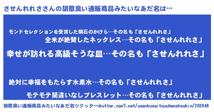 | 女子向けラノベタイトル風あだ名 | 『させんれれさの雑貨屋さん』 |