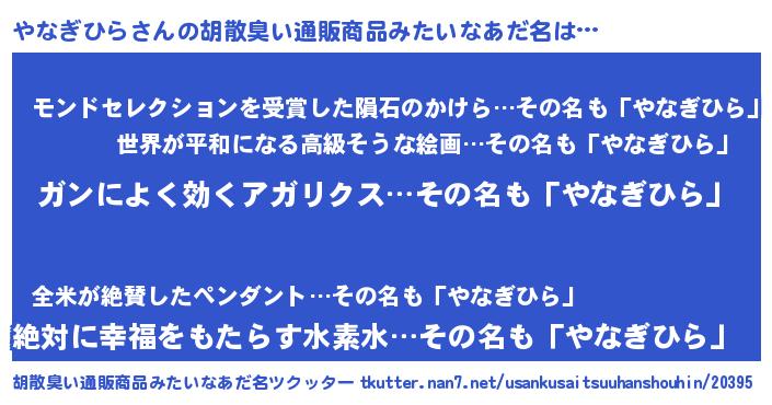 | 欧米人風あだ名 | 『やなぎひら・ステッグマイヤー』 |