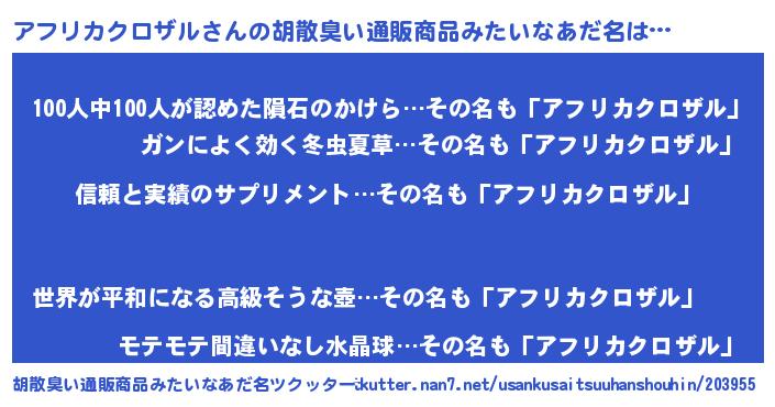 アフリカクロザルさんの胡散臭い通販商品みたいなあだ名をツクッター!