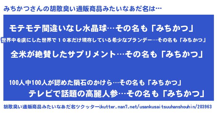| 意味不明あだ名 | 『とにかく怪しいみちかつ』 |