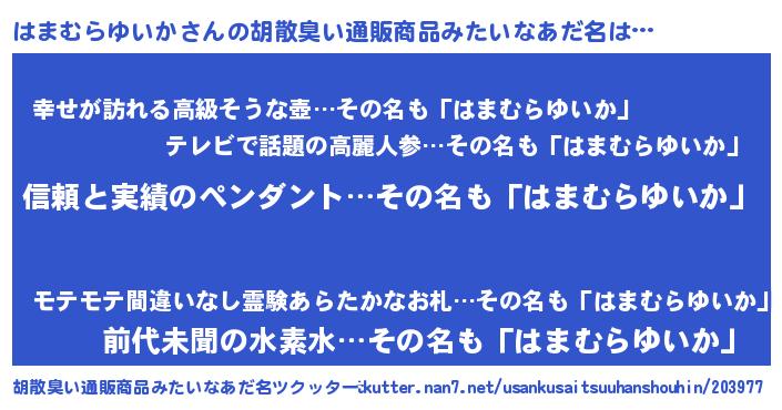 | 意味不明あだ名 | 『とにかく怪しいはまむらゆいか』 |