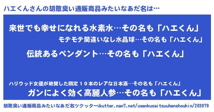 | 欧米人風あだ名 | 『アンジェラ・ハエくん』 |