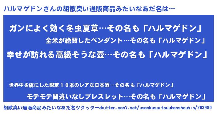 | 意味不明あだ名 | 『ハルマゲドンフォーエバー』 |