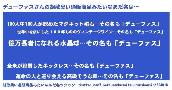 | 恥ずかしいあだ名 | 『プリティーデューファス』『デュっちょ』 |