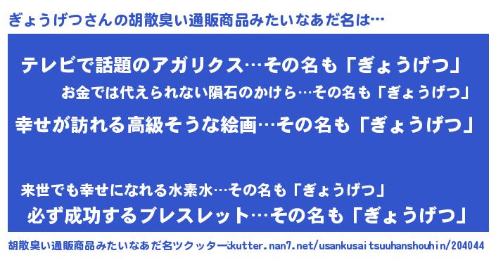| 欧米人風あだ名 | 『ぎょうげつクリステル』 |