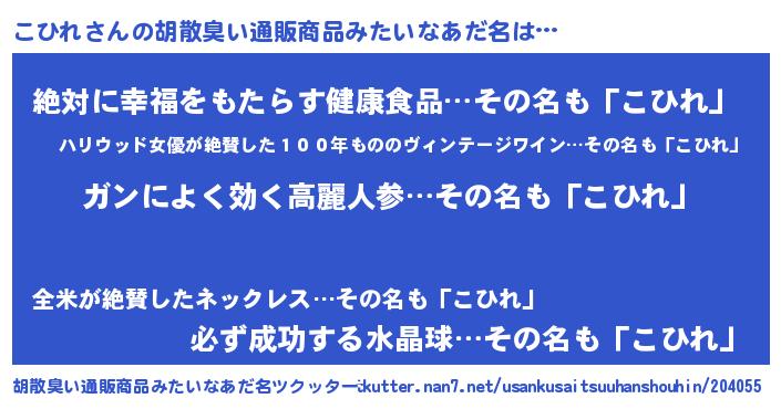 | ヘコむあだ名 | 『こひれ(笑)』『こひにゅー』 |