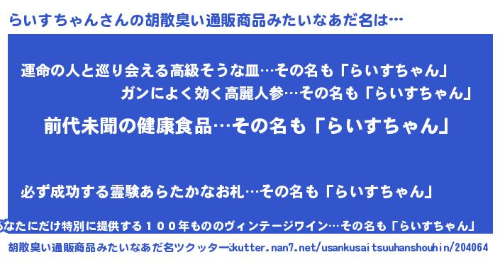 | 意味不明あだ名 | 『永久保存らいすちゃん』 |
