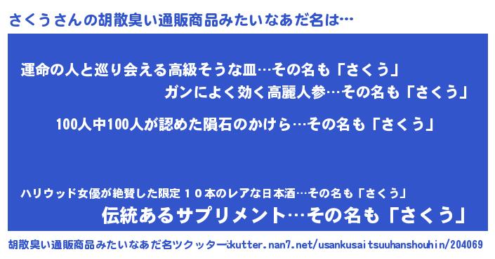 | ヒーロー風カッコイイあだ名 | 『正義の使者さくう』『魔戒騎士サク』 |