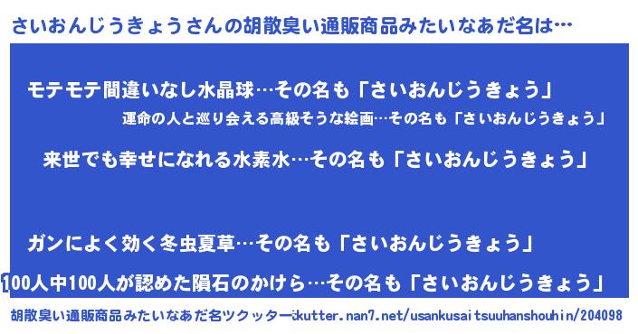さいおんじうきょうさんの胡散臭い通販商品みたいなあだ名をツクッター!