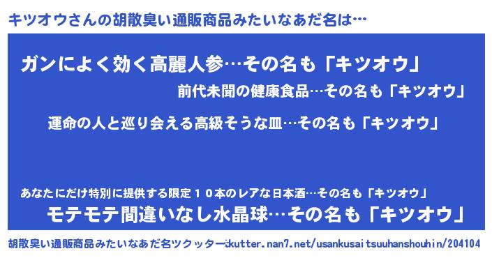 | ヒーロー風カッコイイあだ名 | 『ウルトラキツオウマン』『ネオキツオウ』 |