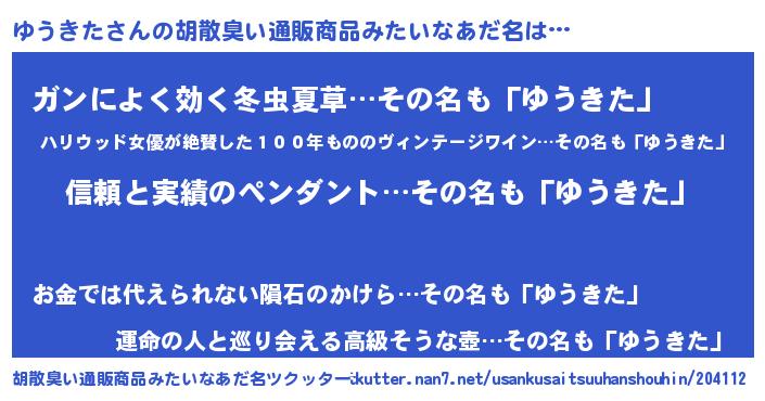 | 意味不明あだ名 | 『とにかく怪しいゆうきた』 |