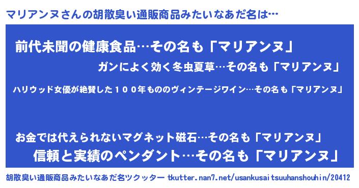 | 意味不明あだ名 | 『住所不定無職マリアンヌ(7歳)』 |