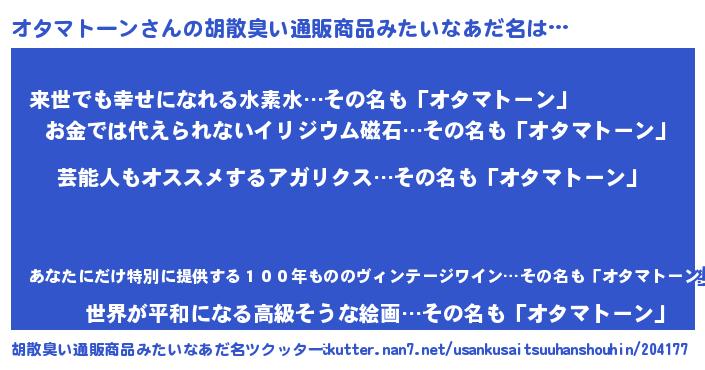 | ヘコむあだ名 | 『オタマトーン(爆)』『なまこ酢』 |