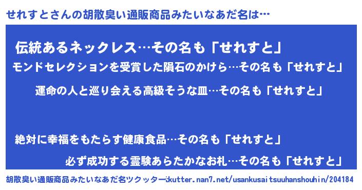 | 意味不明あだ名 | 『せれすとフォーエバー』 |