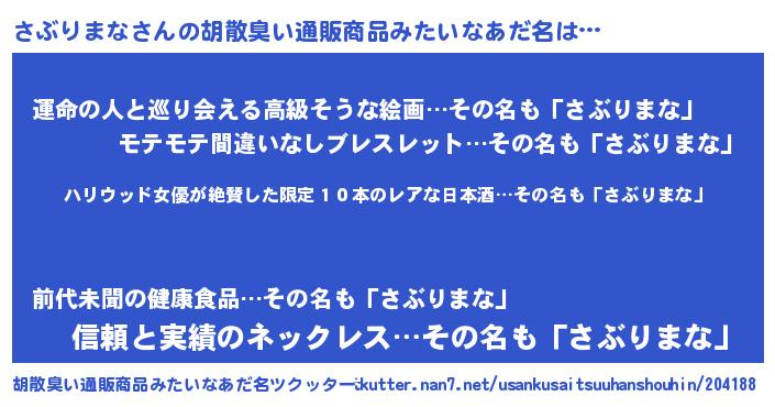 | 意味不明あだ名 | 『住所不定無職さぶりまな(59歳)』 |