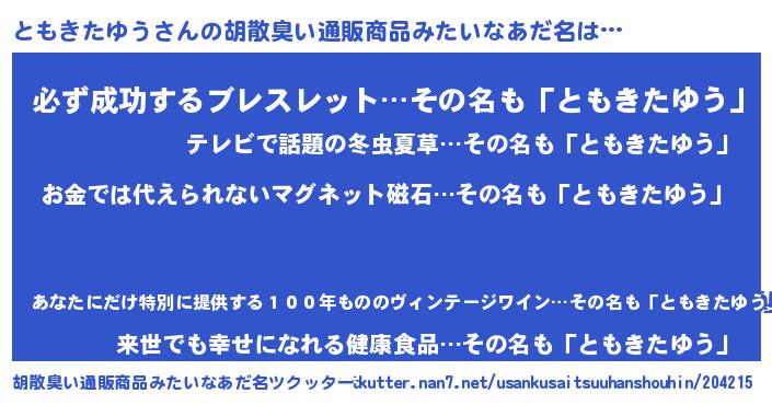 | 肩書あだ名 | 『ともきたゆう船長』『ともきたゆう先生』 |