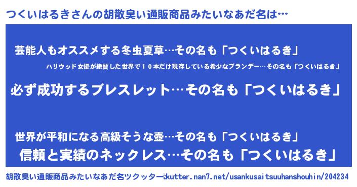 | ヘコむあだ名 | 『つくにー』『つくぷりん』『牛乳』 |