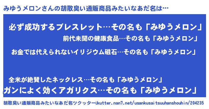 ヘコむあだ名 | 『みゆにゅー』『みゆうメロン(笑)』 |